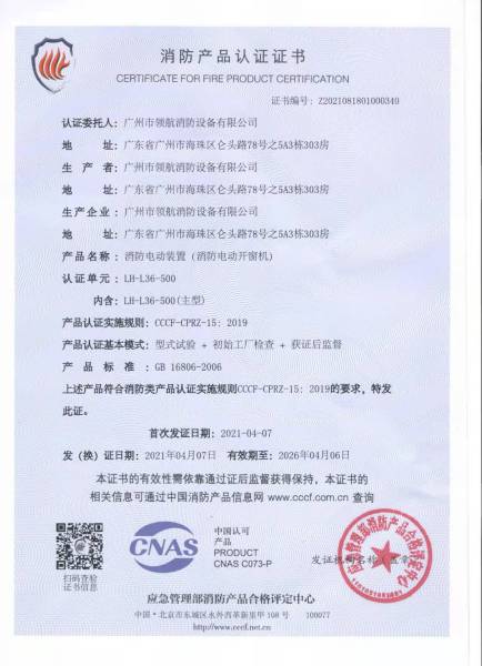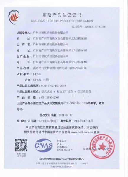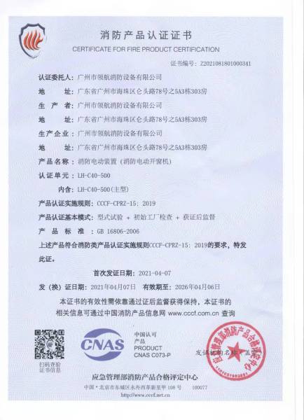 广州市领航消防设备有限公司是一家专业从事消防设备、消防产品、门窗类电机与智能控制系统、生产制造、加工、技术研发、咨询、销售、安装、维护一体化的专业高科技消防企业。 公司研发生产的消防电气控制装置(消防电动开窗机控制设备)、消防电动装置(消防电动开窗机)、防火门监控器、防火门控制器、电动闭门器、联动闭门器、门磁开关、防火门释放器、电磁门吸、逃生锁等门控五金系列产品,均通过国家公安部消防产品合格评定中心型式检验,并颁发产品型式认证证书和产品型式检验报告,资料齐全,满足工程验收。产品以过硬的质量和稳定的性能得到了广大客户的认可和信赖。 公司秉承“顾客至上,锐意进取”的经营理念,坚持“客户第一”的原则为广大客户提供优质的服务,并不断吸收、融汇业界一流的人才、技术。展望未来,领航将一如既往以专业的服务态度和专业的技术支持团队服务于广大客户,同时欢迎广大客户来厂参观指导。 |